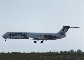 Llegada del MD83 LV-BDO de AUstral por cabecera 36.